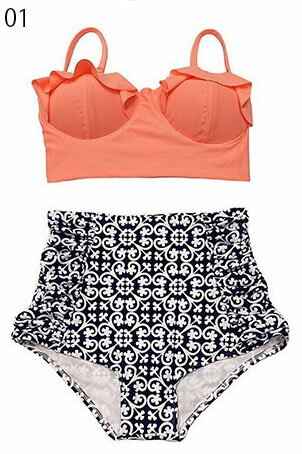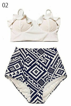 夏のビーチにぴったりのカラフルなハイウエストデザインビキニ。